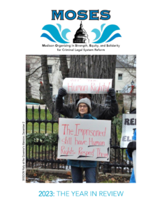 Newsletters include descriptions of upcoming and past MOSES events, actions, and other activities, book reviews, profiles of members and returning citizens, issue briefings, and much more.