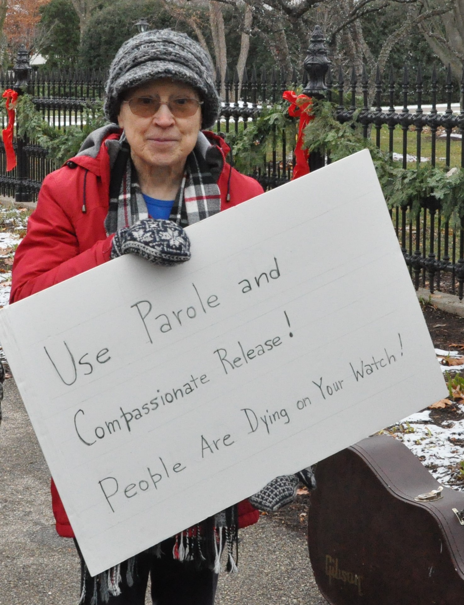 Active Work Group member, Sherry, protesting at the Governor’s mansion.